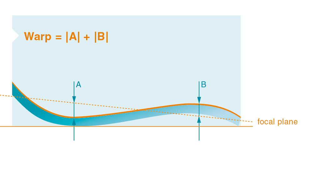 Warp更全面,包括整个晶圆表面的弯曲和扭曲。